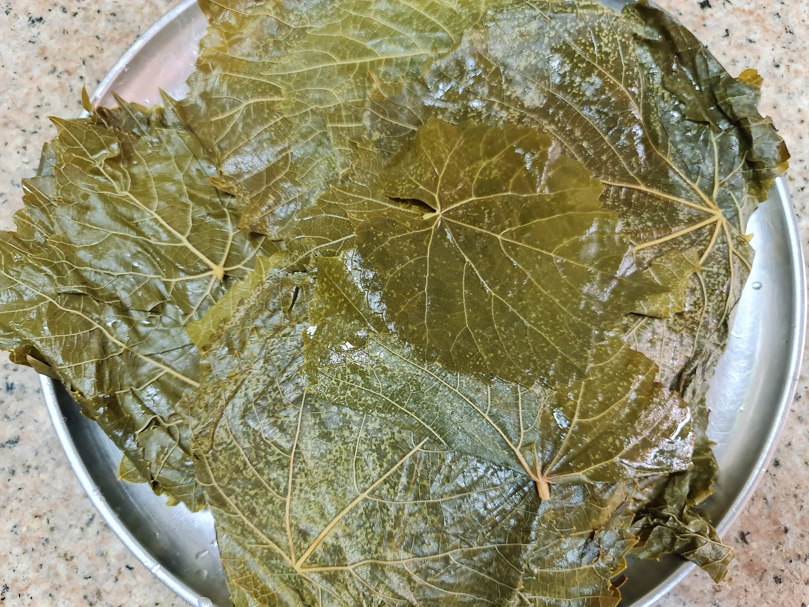 اسلقي ورق العنب بالماء الحار انا استعملت ورق مفرز كان عندي